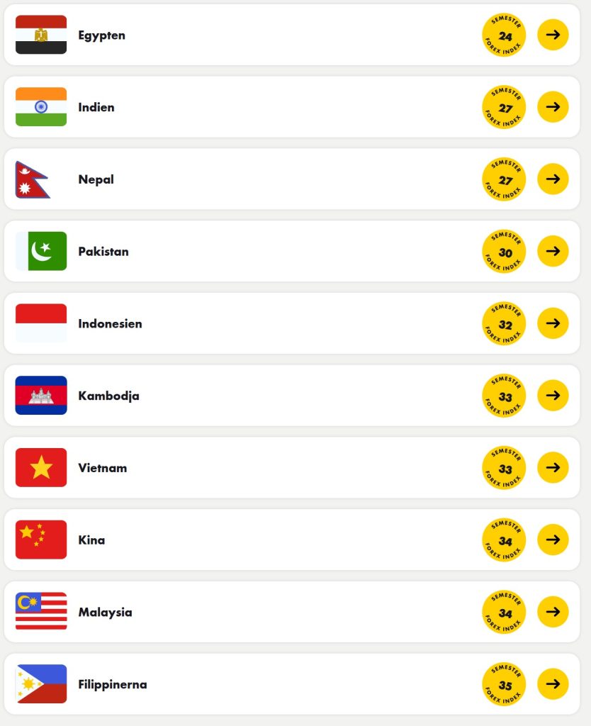 De 10 billigaste länderna 2025 enligt Forex